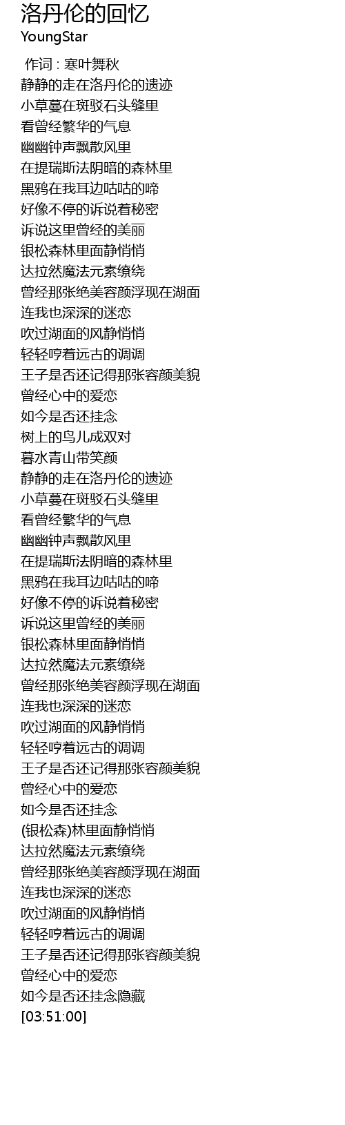 | [00:00.00] | 作词 : 寒叶舞秋 |