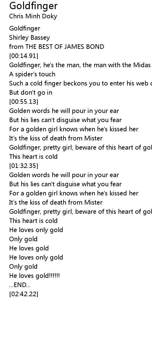 Goldfinger, pretty girl, beware of this heart of gold |