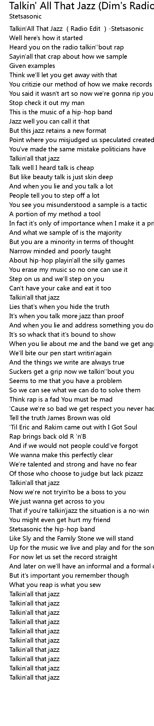 | [00:00.00] | Talkin' All That Jazz Radio Edit Stetsasonic |
