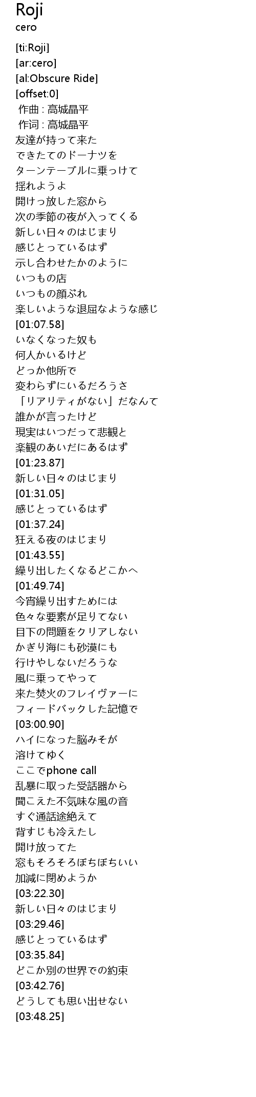 | [00:00.00] | 作曲 : 高城晶平 |