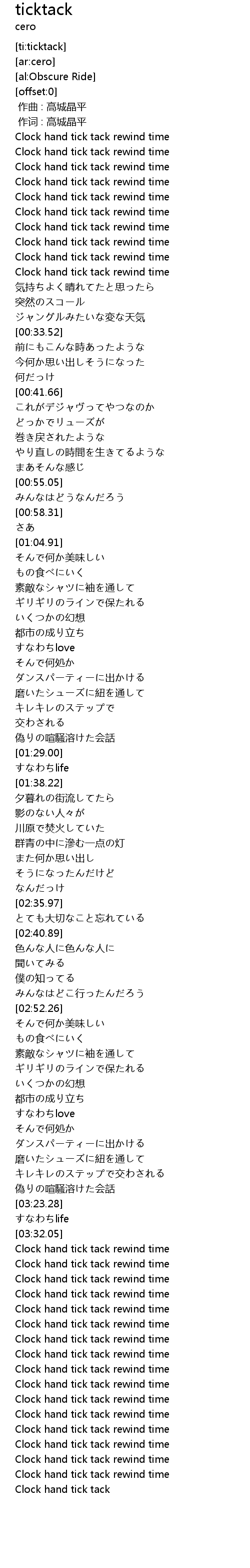 | [03:21.65] | 偽りの喧騒溶けた会話 |