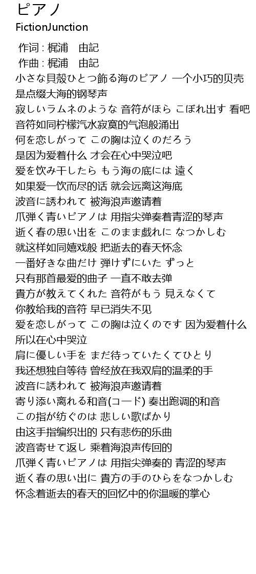| [02:11.13] | 一番好きな曲だけ 弾けずにいた ずっと 只有那首最爱的曲子 一直不敢去弹 |