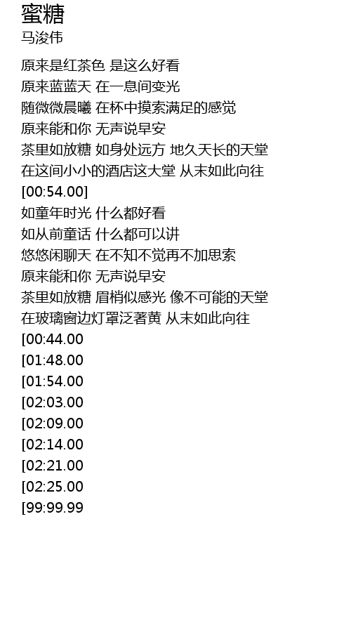 | [00:37.00] | 茶里如放糖 如身处远方 地久天长的天堂 |
