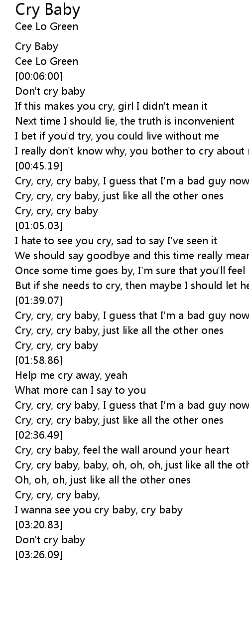 Cry, cry baby, baby, oh, oh, oh, just like all the other ones |