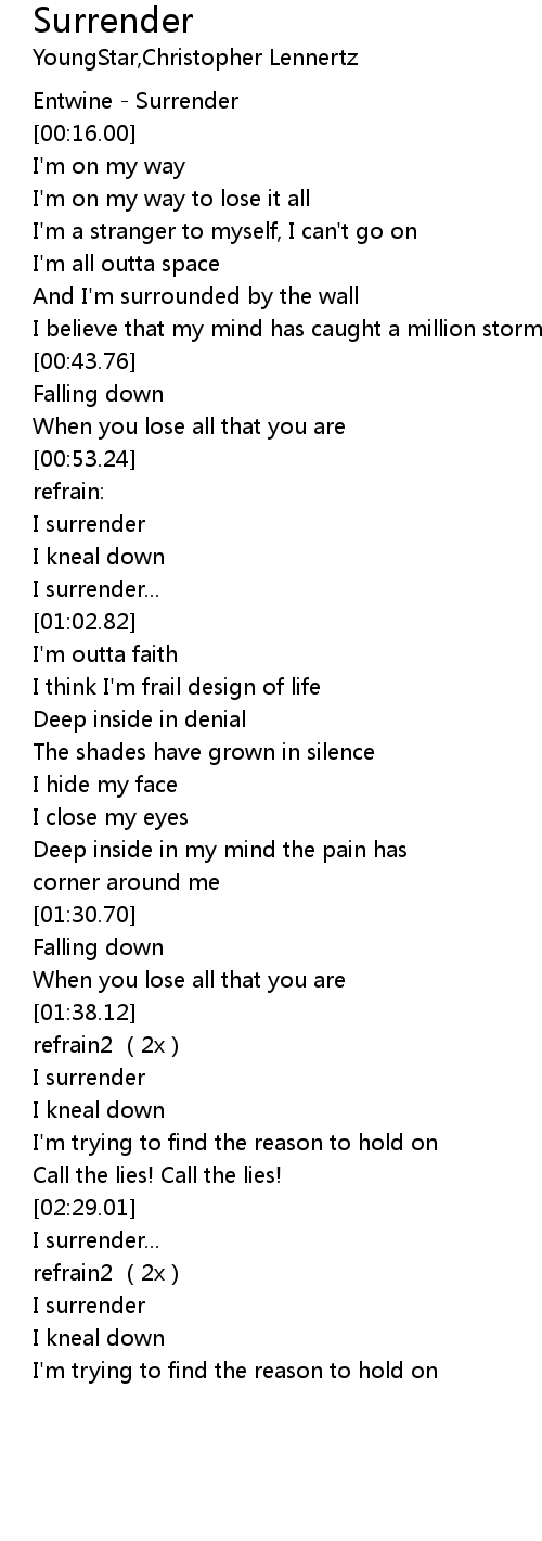 | [00:25.78] | I'm a stranger to myself, I can't go on |