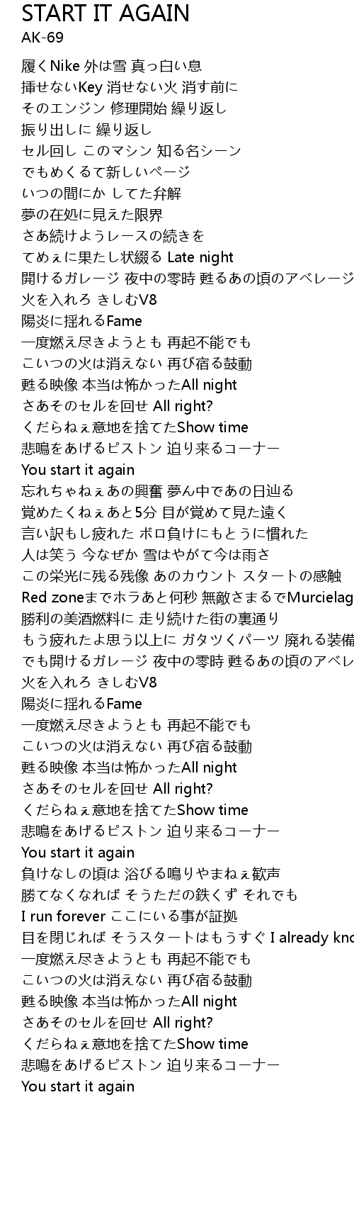 | Song | START IT AGAIN |