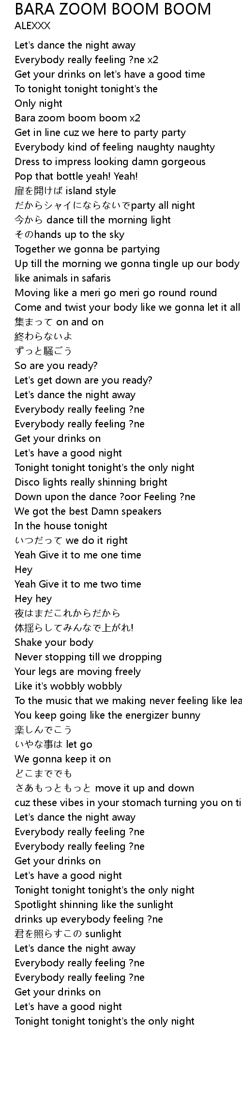 | Song | BARA ZOOM BOOM BOOM |