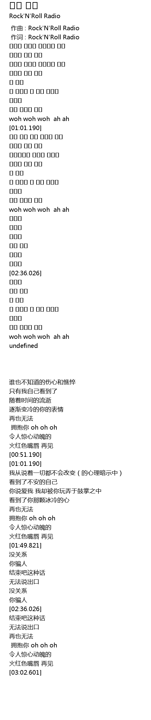 | [00:01.00] | 作词 : Rock'N'Roll Radio |