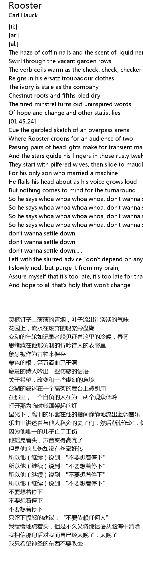 So he says whoa whoa whoa whoa, don't wanna settle down...... |