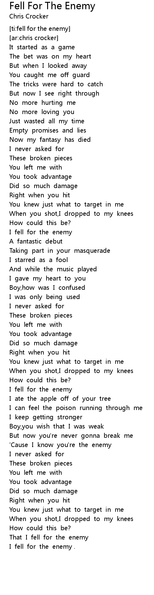 Fell For The Enemy Lyrics