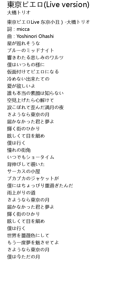 | [00:00.501] | 東京ピエロLive 东京小丑)-大橋トリオ |