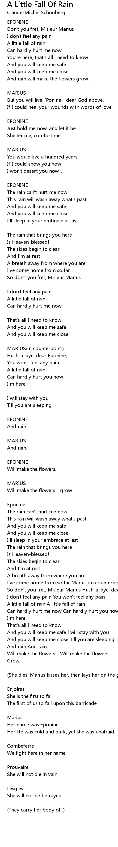 So don't you fret, M'sieur Marius Hush-a-bye, dear Eponine |