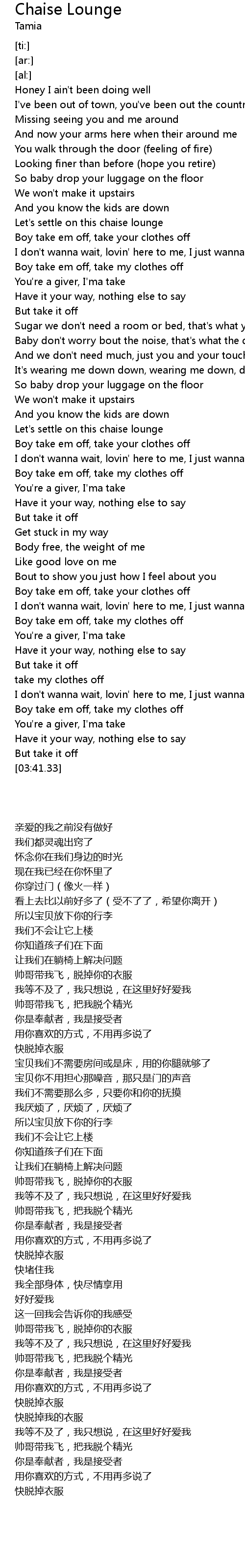| [03:23.41] | Boy take em off, take my clothes off |