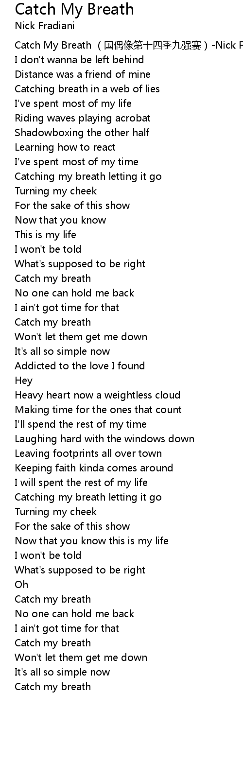 | [00:00.00] | Catch My Breath (国偶像第十四季九强赛)-Nick Fradiani |