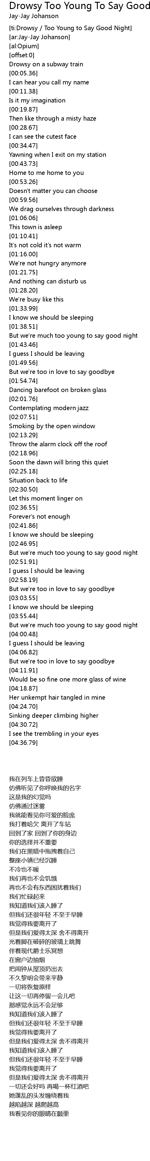[ti:Drowsy / Too Young to Say Good Night] |