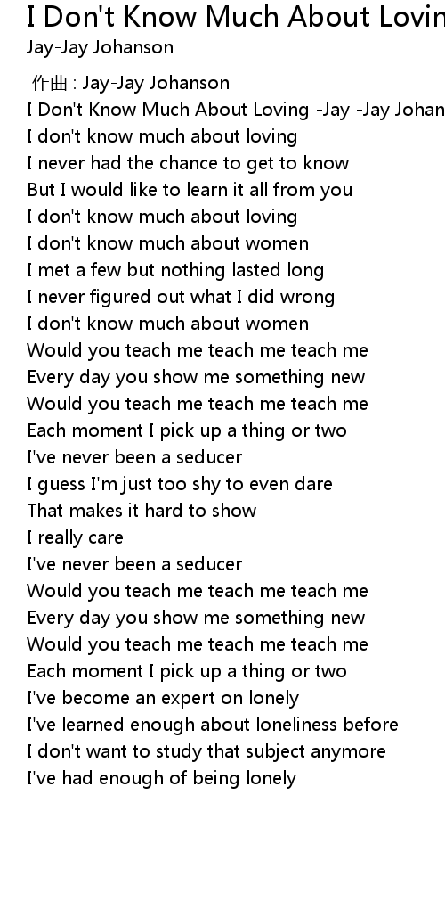 | [00:00.00] | I Don' t Know Much About Loving Jay Jay Johanson |