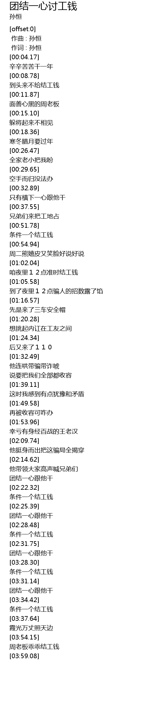 | [01:02.59] | 咱夜里12点准时结工钱 |