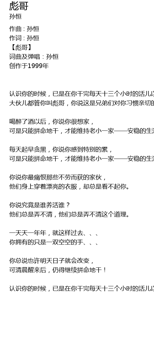 | 大伙儿都管你叫彪哥,你说这是兄弟们对你习惯亲切的叫法。 | |
