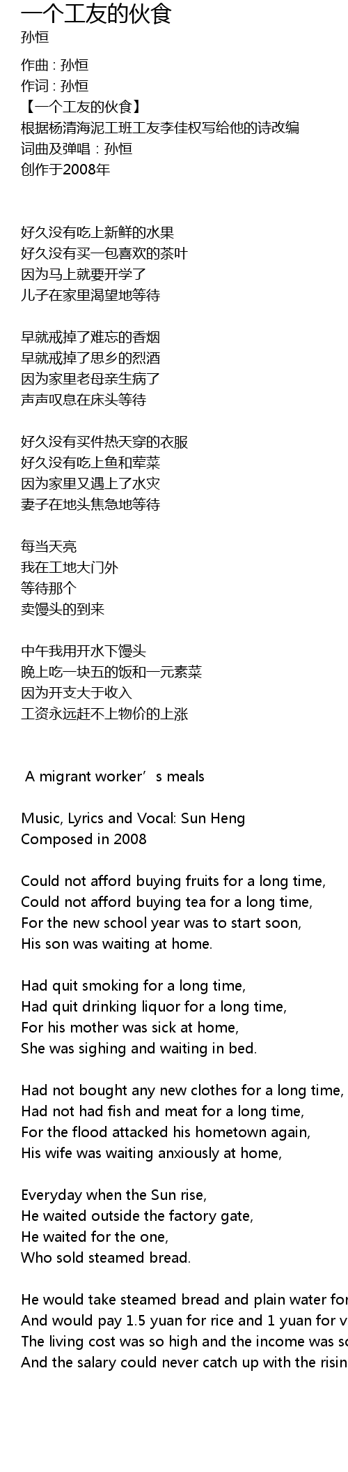 | 根据杨清海泥工班工友李佳权写给他的诗改编 | |