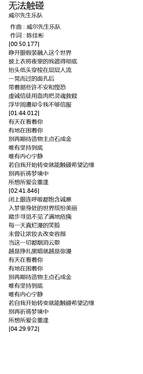 | [00:00.00] | 作曲 : 威尔先生乐队 |