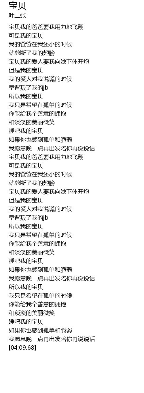| [00:34.63] | 宝贝我的爸爸要我用力地飞翔 |