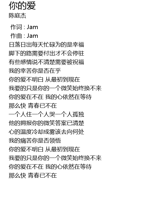 | [00:00.000] | 作词 : Jam |