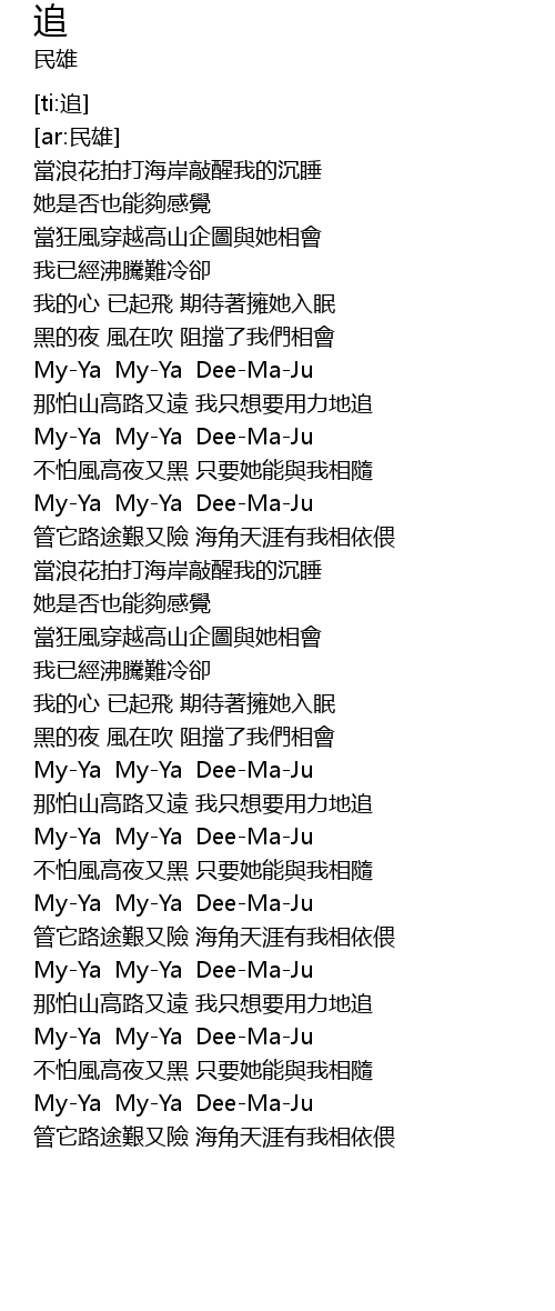 | [00:53.68] | My-Ya My-Ya Dee-Ma-Ju |