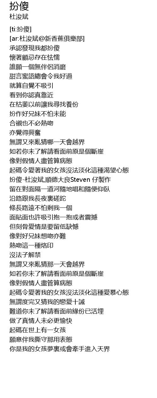 | [01:14.767] | 扮傻-杜浚斌,順德大良Steven 仔製作 |