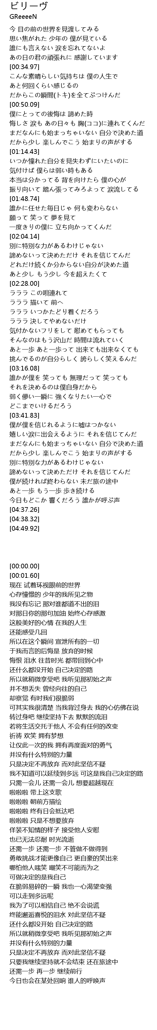 | [03:03.14] | あと一歩 あと一歩って 出来ても出来なくても |