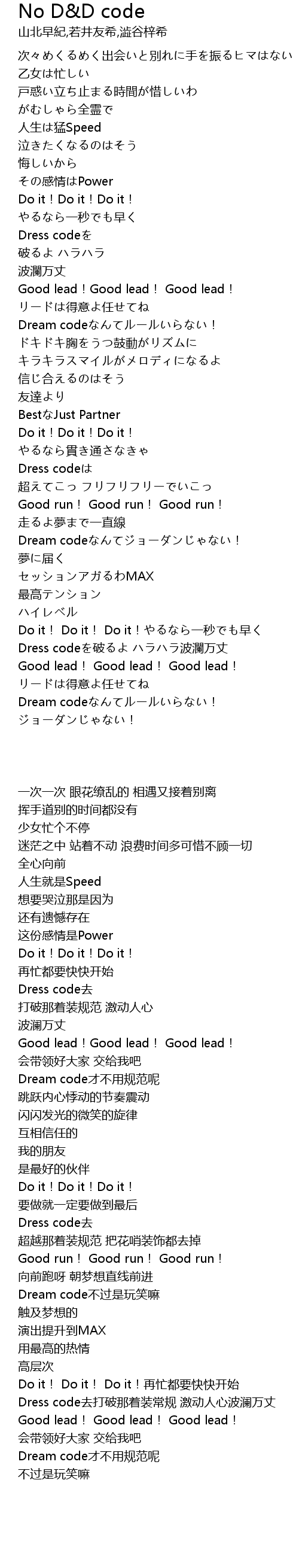 | [01:05.440] | Dream codeなんてルールいらない! |