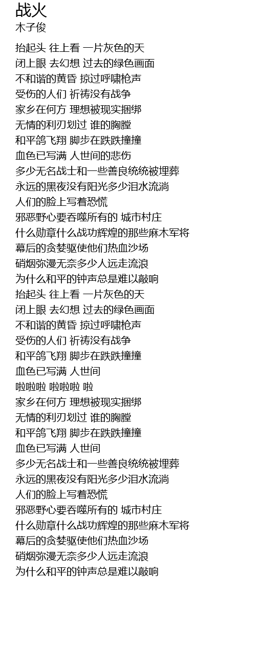 | [00:53.92] | 受伤的人们 祈祷没有战争 |