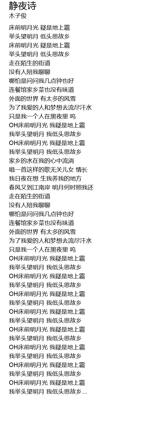 | [00:40.86] | 举头望明月 低头思故乡 |