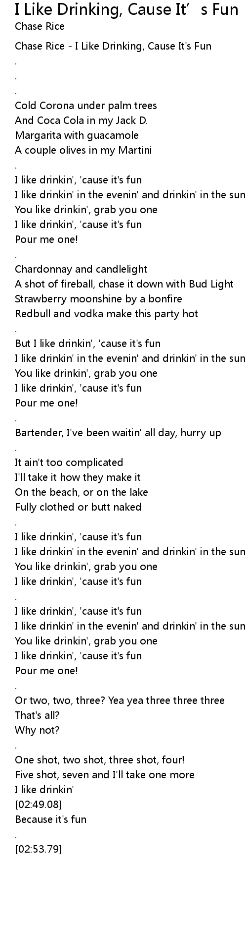 Chase Rice - I Like Drinking, Cause It's Fun |