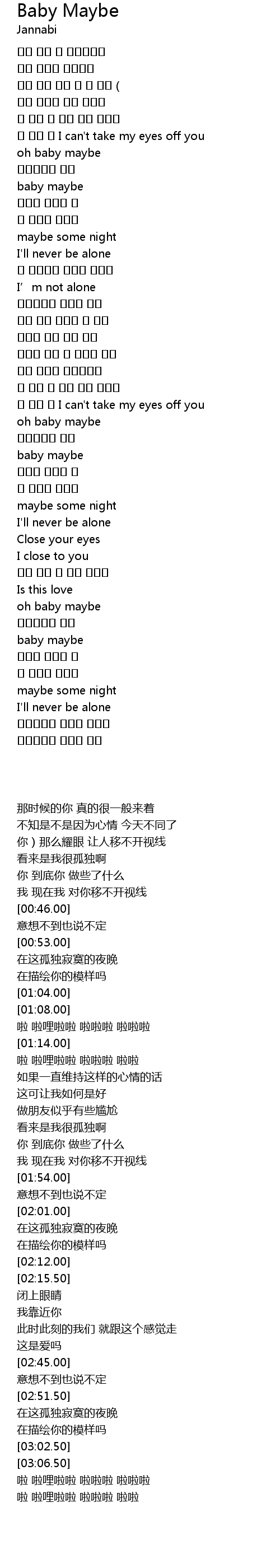 | [00:41.00] | 나 지금 난 I can't take my eyes off you |
