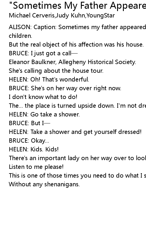 | [00:00.04] | ALISON: Caption: Sometimes my father appeared to enjoy having children. |