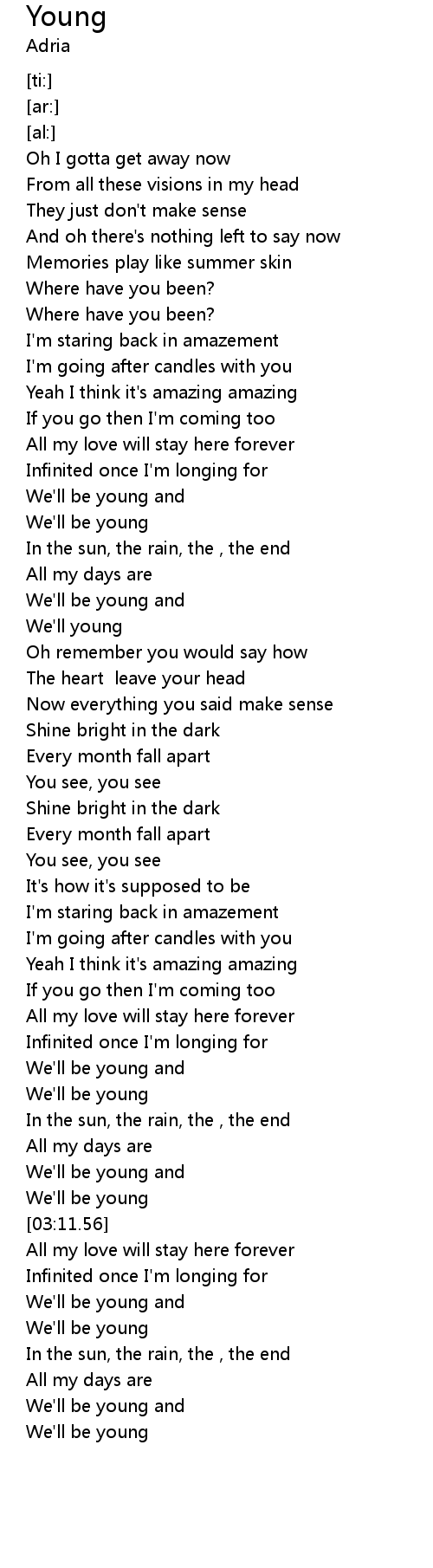 | [03:06.39] | We'll be young |