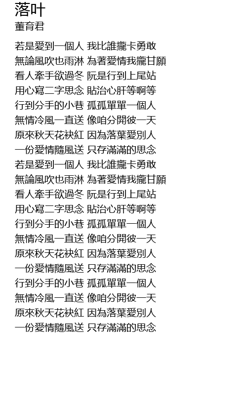 | [02:42.530] | 原來秋天花袂紅 因為落葉愛別人 |