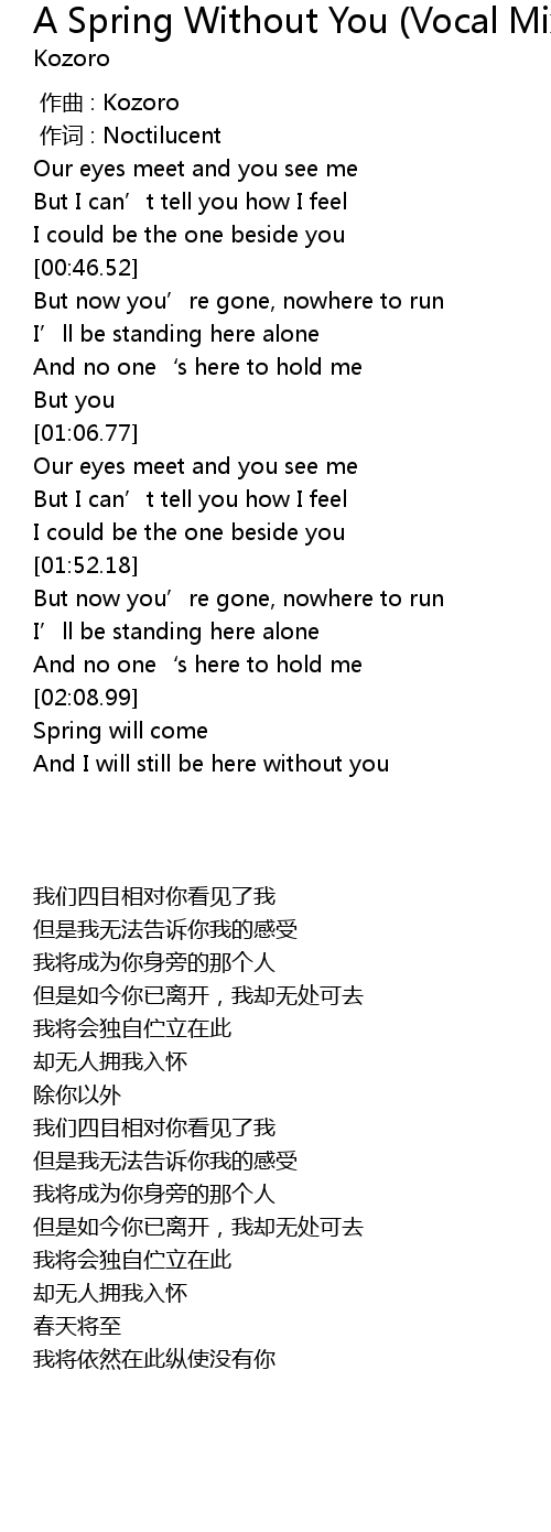 | [00:49.08] | But now you’re gone, nowhere to run |