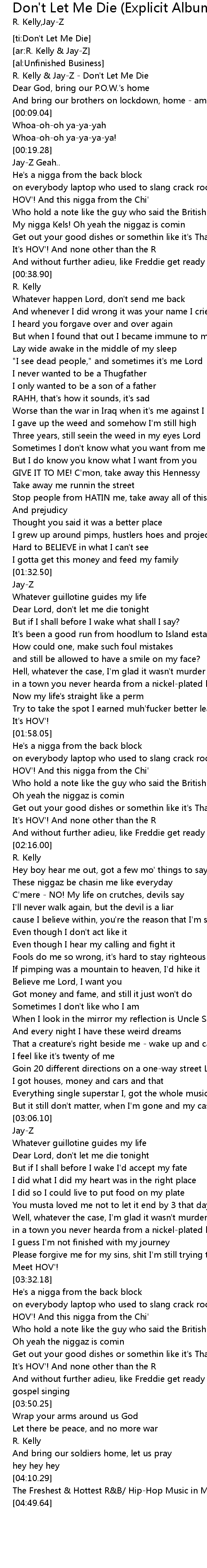 | [00:00.00] | R. Kelly & Jay-Z - Don't Let Me Die |
