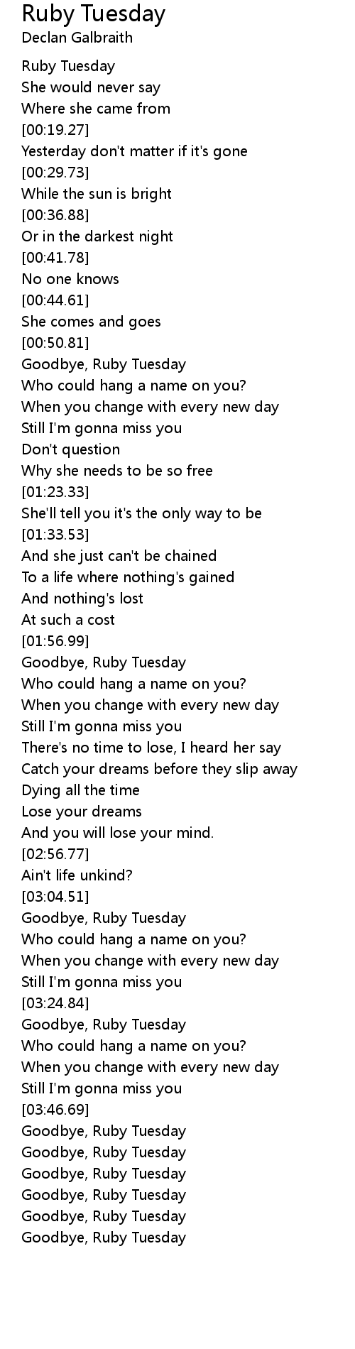Goodbye, Ruby Tuesday |