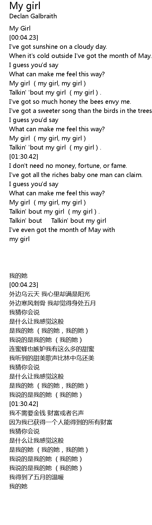 | [00:39.70] | Talkin' 'bout my girl (my girl). |