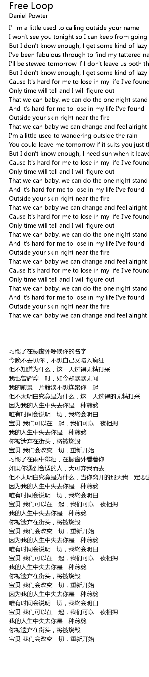 | [00:50.500] | Cause It's hard for me to lose in my life I've found |