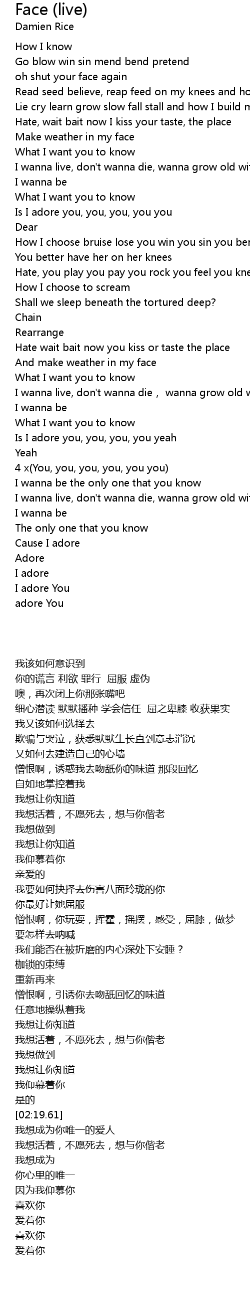 | [02:44.40] | I wanna live, don' t wanna die, wanna grow old with you |