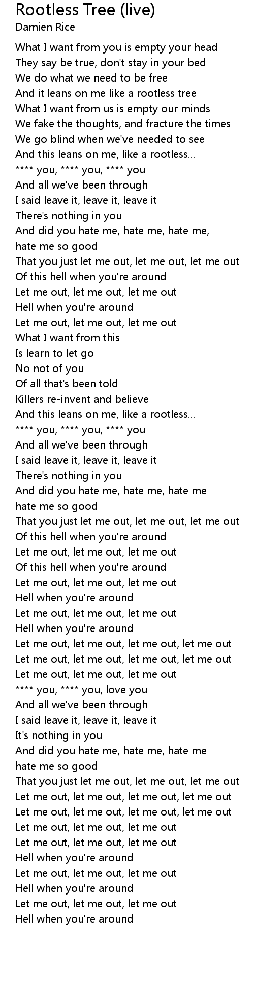 Rootless Tree (live) Lyrics