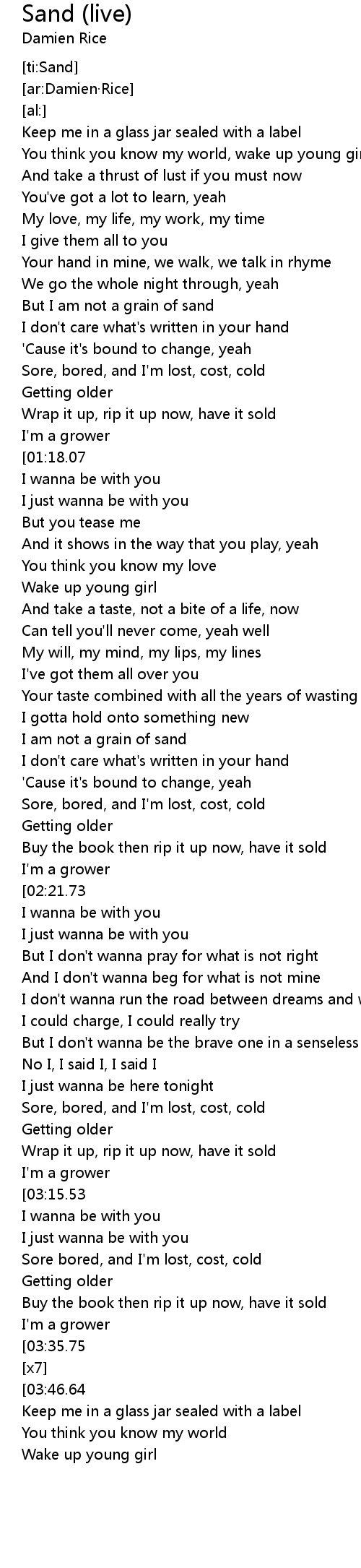 | [02:00.53] | I am not a grain of sand |