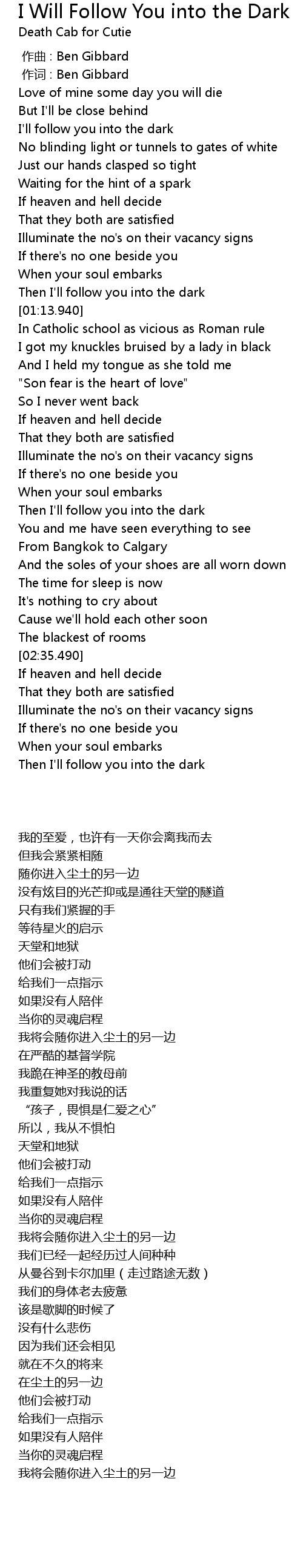 | [00:01.00] | zuo ci : Ben Gibbard |