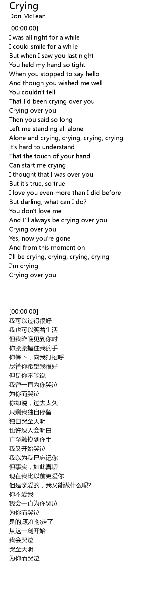 And I'll always be crying over you |