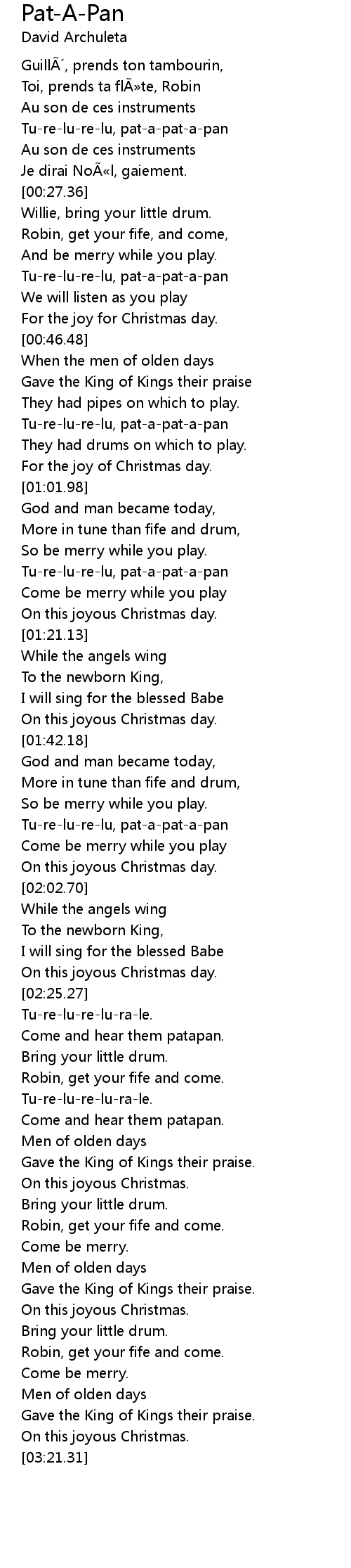 | [00:39.64] | Tu-re-lu-re-lu, pat-a-pat-a-pan |