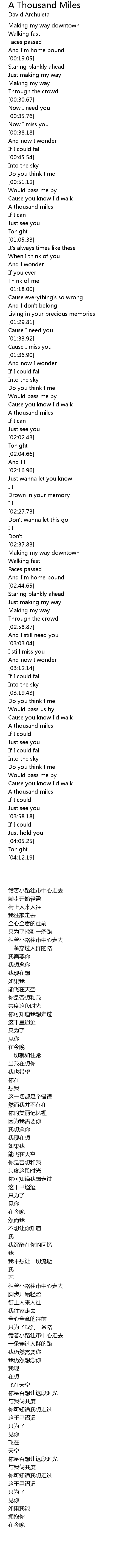 A Thousand Miles Lyrics