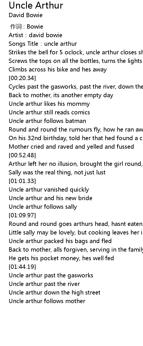 | [00:04.62] | Songs Title:uncle arthur |